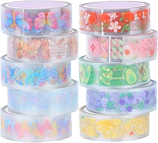 Kit de ruban washi pour bricolage, décoration de scrapbooking, ruban de masquage pour emballage de cadeaux, ruban en plastique imperméable, cadeau pour scrapbooking, journal et artisanat d’art (10 rouleaux).