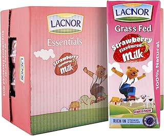 Lait lacnor aromatisé à la fraise, 100% naturel, riche en vitamines et en calcium, 30% de sucre réduit, 180 ml, paquet de 32 pièces.