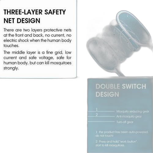 La sécurité est notre priorité. Les grilles de protection situées de chaque côté protègent non seulement la maille électrique centrale contre les dommages, mais elles empêchent également tout choc électrique accidentel pour les utilisateurs. Utilisez-la en toute tranquillité, sans inquiétude !