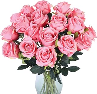 Loui yu – roses artificielles 10 pièces – fausses roses en soie avec longues tiges pour bouquets de fête de mariage pour la décoration de la maison et du bureau – rose foncé.