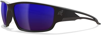 Lunettes de sécurité polarisées circulaires edge tskap218 kazbek, anti-rayures, antidérapantes, uv400, qualité militaire, conformes ansi/isea et mceps, 5″ de large, monture noire / verres miroir micro bleus.