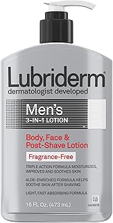 Luprederm lotion 3 en 1 non parfumée pour hommes enrichie en aloe vera apaisant pour le corps et le visage, hydratant après-rasage non gras, sans parfum, 16 fl oz.