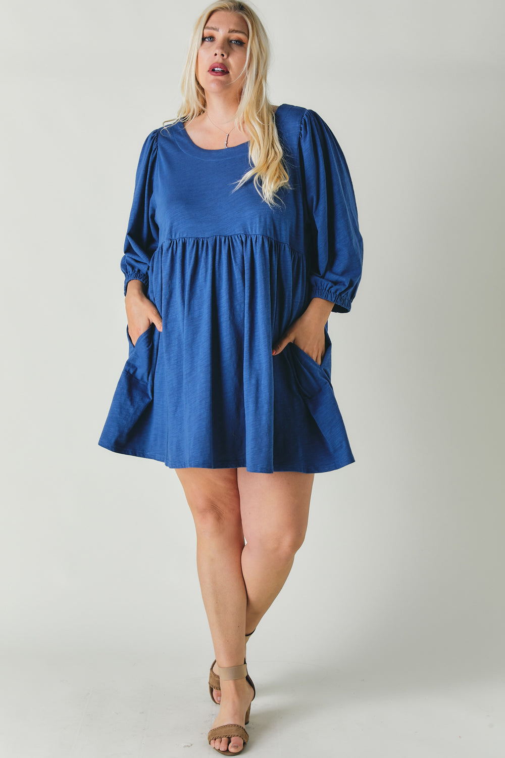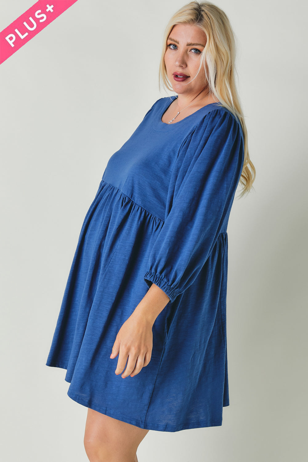 MINI-ROBE SOLIDE COL ROND MANCHES LONGUES 100% Rayonne