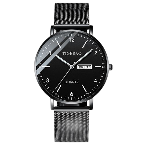 Montre quartz double calendrier imperméable pour homme – Noir