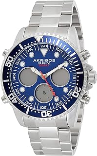 Montre à quartz pour homme akribos xxiv, affichage analogique-numérique et bracelet en acier inoxydable massif, ak1094ssbu.