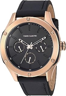 Montre multifonction pour homme vince camuto avec bracelet en or rose et cuir
