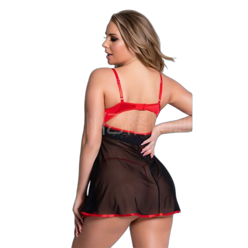 Conçue avec des bonnets à armatures rembourrés en noir et rouge, cette nuisette offre un maintien idéal tout en mettant en valeur la poitrine. Son dos nu avec agrafes de soutien-gorge et bretelles ajustables vous permet de l’ajuster à votre morphologie, garantissant ainsi un confort sur mesure.