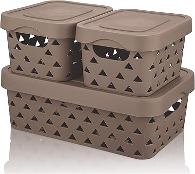 Panier asiatique multi-étoiles, lot de 3 pièces (grand x 1 + petit x 2) avec couvercle pour le rangement / corbeille de fruits, assorti, grand.