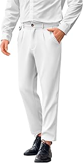 Pantalon habillé coupe classique pour hommes, devant plat, droit, longueur cheville, pantalon court décontracté.