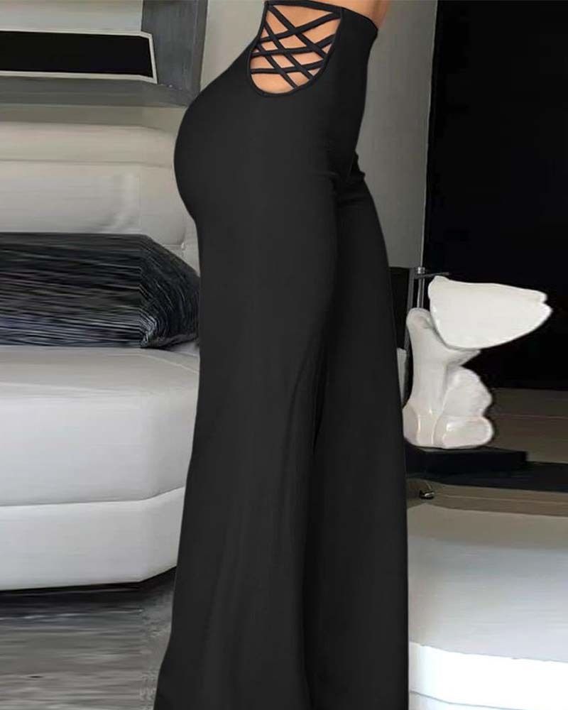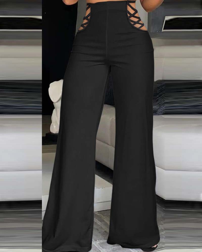 Pantalon large taille haute à ruban tendance