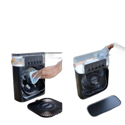 - Ventilateur réglable de haut en bas et réservoir d’eau amovible pour un nettoyage facile.