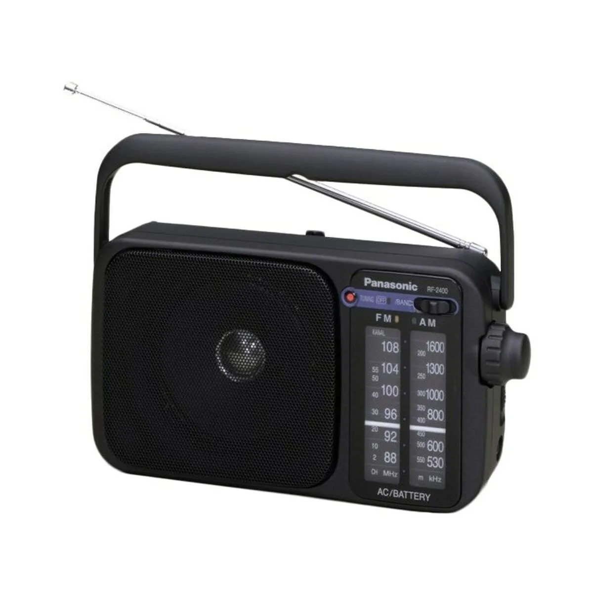 Panasonic RF-2400D. Radio: Portable, Type de tuner: Analogique, Type de bandes supportées: AM,FM. Unité de lecture: 1 cm. Casque connection: 3,5 mm. Couleur du produit: Noir, Commande de volume: Rotatif, Type d’antenne: Externe. Tailles de batteries compatibles: AA
