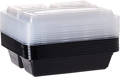 Récipient rectangulaire jetable écologique pour micro-ondes snh – 3 compartiments – 12 pièces..