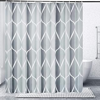 Rideau de douche à rayures, imperméable, ourlet épais, durable, lavable, accessoires de salle de bain en tissu polyester à séchage rapide, rideaux de bain bohème avec 12 crochets (rayés) 71″ x 71″ (e).