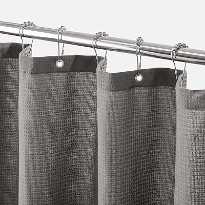 Rideau de douche en tissu mdesign tissage gaufré de qualité hôtelière crochets métalliques avec œillets.