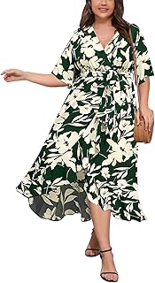 Robe longue d’été skomchic pour femme, grande taille, imprimé floral, col en v, manches courtes et dos long.