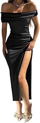 Be the first to review “Robe longue fendue à épaules dénudées pour femmes, robe de soirée élégante”