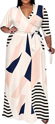 Robe longue florale grande taille pour femme, robe ample à manches 3/4 avec ceinture.