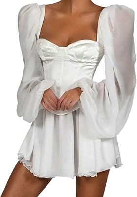 Robe moulante corset à manches lanternes pour femmes mini robe de soirée sexy en mousseline.