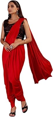 Robe saree en lycra de soie à couches dhoti indo-occidentale prête à porter