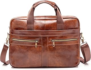 Sac messager en cuir véritable pour homme – sac rembourré pour ordinateur portable 14 pouces, marron.