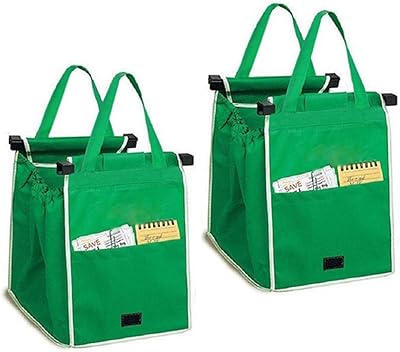 Sacs à roulettes réutilisables, sacs d’épicerie réutilisables, sacs d’épicerie pliables avec poignées, faciles à nettoyer, chariot à clipser (vert).