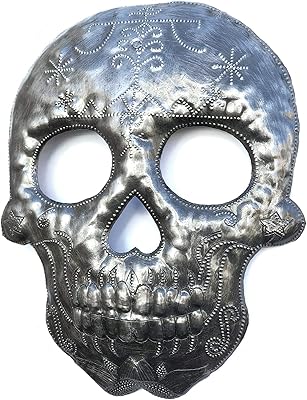 Sculpture murale en métal avec crâne de veve ogou feray, œuvre d’art squelette de crâne en sucre, faite à la main en haïti, métal recyclé 7,6 x 9,75 pouces.