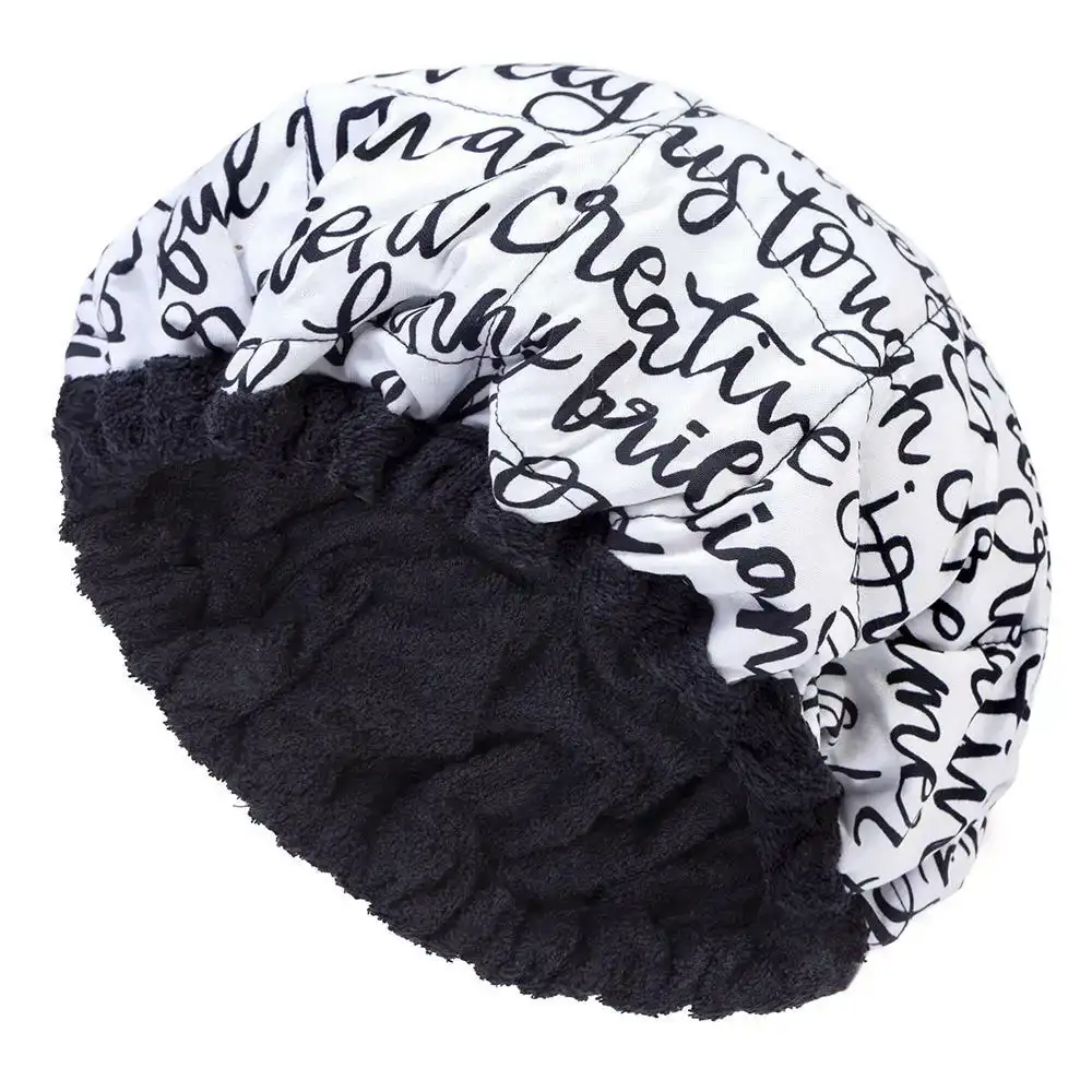 Bonnet chauffant chauffant pour micro-ondes Hot HeadTM. Cet élégant Inspire Hot Head noir et blanc offre des mots d affirmation positifs et rien d autre que des vibrations de bien-être. Portez votre côté préféré vers l extérieur ou alternez-les selon votre humeur. Respectueux de l environnement – Fait à la main avec tous les matériaux naturels Réversible et réutilisable Disponible en plusieurs couleurs Facile à utiliser – Traitements de qualité salon dans votre maison Pour tous les types et textures de cheveux Produit suffisamment de chaleur pour un traitement de 20 à 45 minutes Pas de cordons, pas de tracas – Liberté de mouvement tout en revitalisant vos cheveux en profondeur À PROPOS DU PRODUIT : Hot HeadTM améliore considérablement les résultats de votre revitalisant en profondeur, masque capillaire, huile ou autre traitement capillaire préféré. Sans chaleur, votre traitement ne peut que faire beaucoup pour améliorer la qualité de vos cheveux. En règle générale, la cuticule est fermée, de sorte que le traitement ne peut agir que sur la surface de la tige pilaire. Les résultats sont minimes et superficiels par rapport aux traitements de conditionnement en profondeur améliorés par la chaleur. Hot Head permet à la cuticule du cheveu de s ouvrir pendant une période prolongée, permettant au traitement de pénétrer dans la tige du cheveu, en le nourrissant de l intérieur. Les bonnets de douche sont essentiels lors de l utilisation de Hot Head! Épargnez-vous un voyage au magasin de produits de beauté et ajoutez un paquet de 10 bonnets de douche jetables . Pendant que vous y êtes, pourquoi ne pas agrémenter votre soin d un de nos vaporisateurs parfumés ? Explorez vos options Spritzer sucré , Spritzer à la noix de coco noire, Spritzer aux agrumes, Spritzer à la lavande