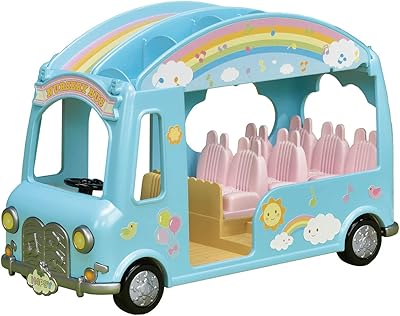 Sunshine calico critters nursery bus pour poupées, sièges auto jouets pour jusqu’à 12 figurines à collectionner, bleu.