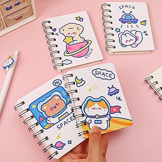 Sweet seven – ensemble de mini carnets de poche avec motif animal de dessin animé mignon – paquet de 4, cahier à spirale portable 3×4 avec papier vierge et ligné, y compris un mini journal intérieur de taille a7.