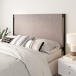 Tête de lit tapissée en rotin nathan james garcia boho, queen size, canne naturelle/noir.