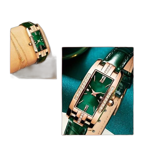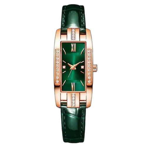 - Nom du produit : Vintage Carré Vert Filles Montre Élégante Minimaliste En Cuir Dames Montre Diamant