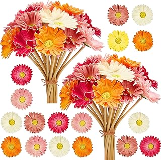 Waydress 36 pièces gerbera artificielles 15″ marguerites en polyuréthane bouquet de multicolores